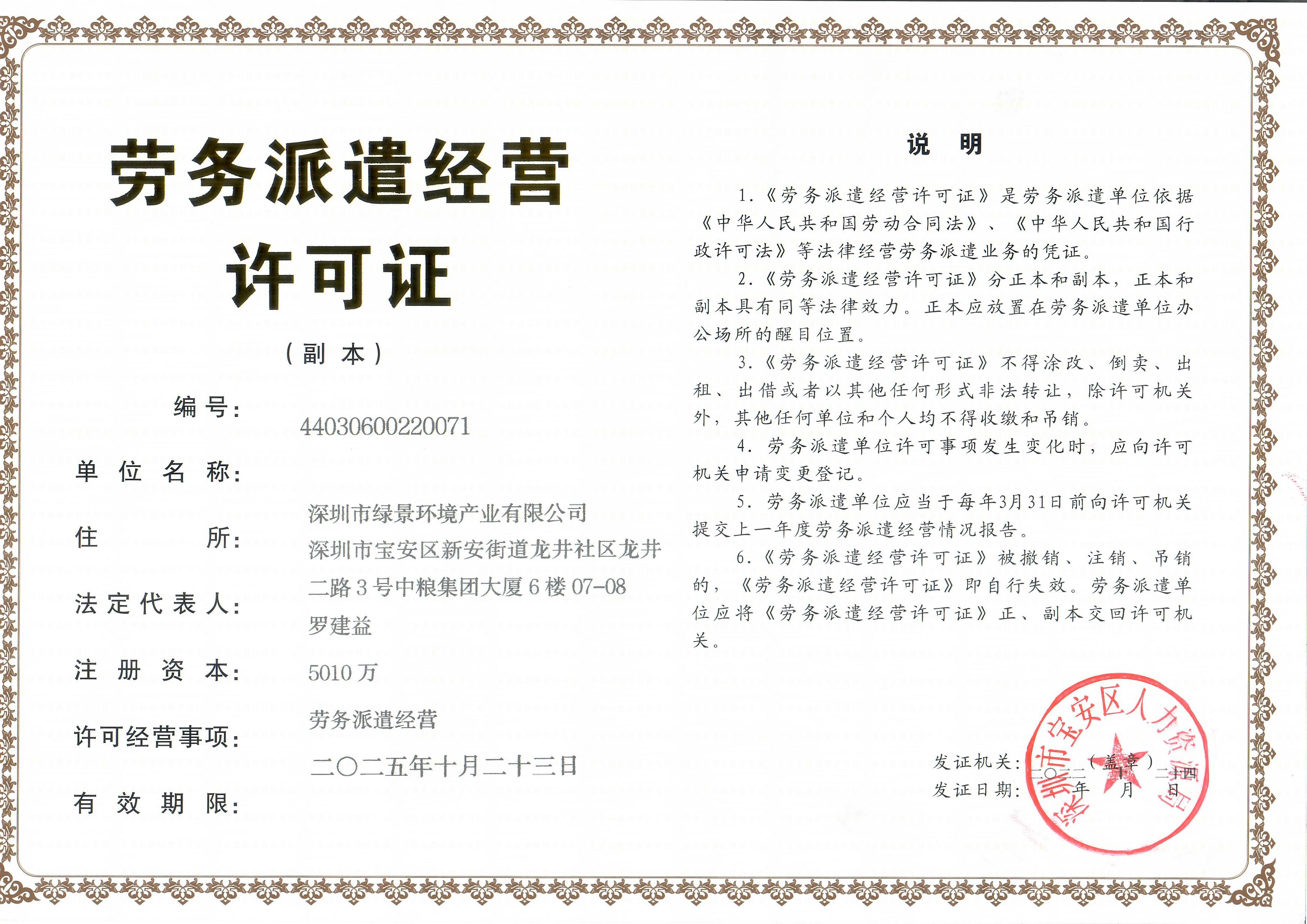 劳务派遣许可证